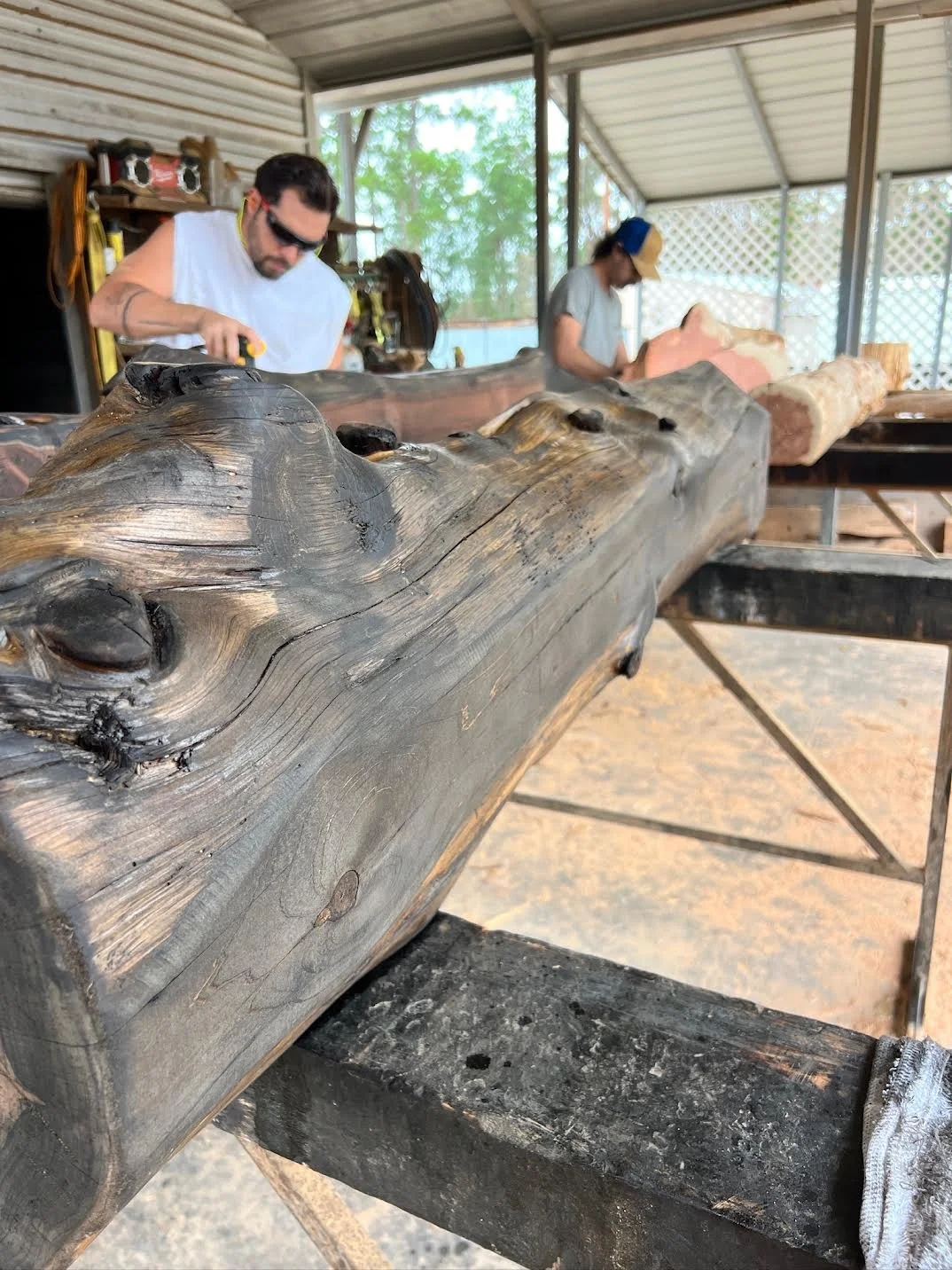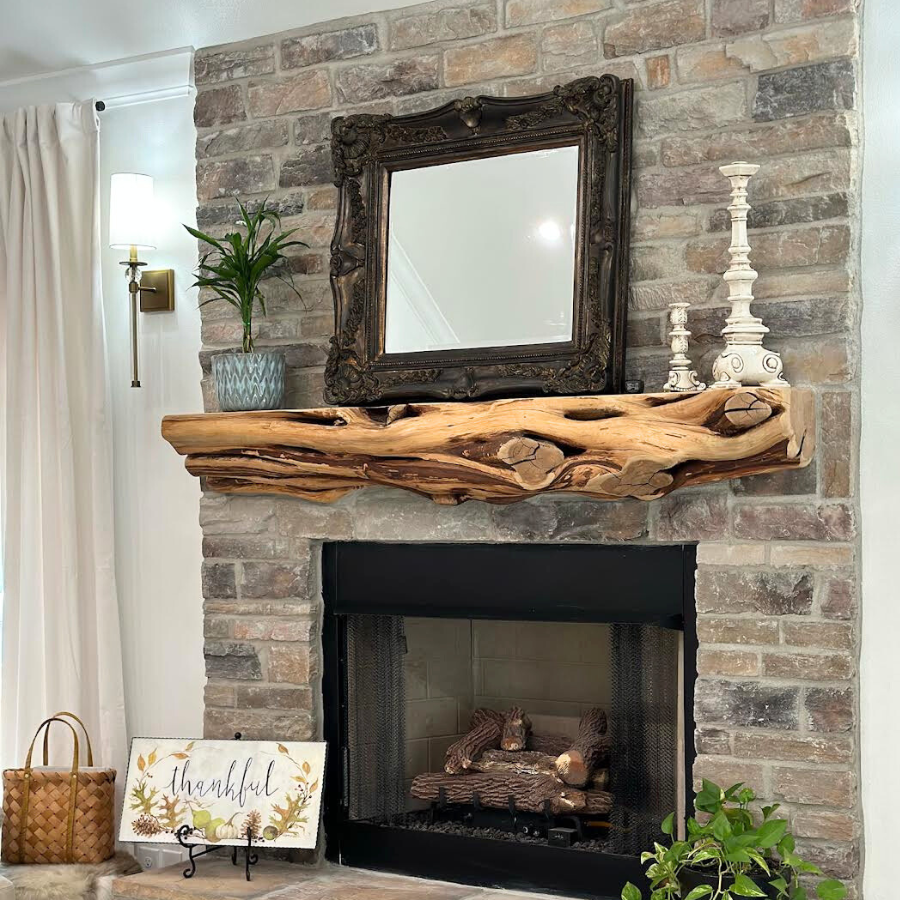 Custom, live-edge fireplace mantels handmade in East Texas.